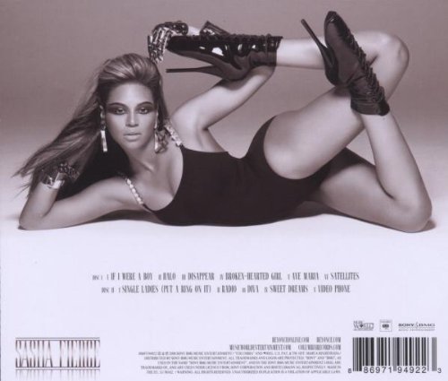 On her third solo disc, Beyoncé returns with a concept album of sorts, a double disc with disc 1 comprising ballads reflecting Beyoncé, and disc 2 comprising more uptempo songs reflecting her fiercer alter ego, Sasha.