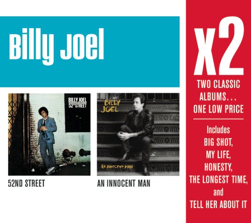 This "Billy Joel x2" collection is labeled on the cover as "Two Classic Albums ... One Low Price." The low price claim is undeniable; the term "classic" is all relative. While "52nd Street" is indeed a soulful masterpiece in Joel's glorious catalog, my feeling is that "An Innocent Man" sounds contrived and lackluster, despite the artist's effort to release lively-sounding, fun tunes. But hey, the bottom line is that these records offer lots of well-known songs. Joel isn't making music anymore, so why not get your hands on everything he put out if you're a big fan. Below are my reviews of each CD: