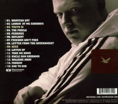 I love brother ali for what he is and does. He speaks nothing but the unabashed truth.. all he does on this Lp is show how superior he is to anyone else in the game rite now. I honestly think the only person who can mess with him rite now is Nas. The best part of the whole ordeal is that this man is completely respected and he is staying true to his underground roots( RHYMESAYERS....MINNEAP BABY!!!!)in minneapolis. We have shown nothing but support and love to ali and all he has given us back is INCREDIBLE albums and heartfelt anthems.