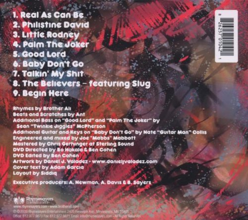 Fresh off of his critically acclaimed sophomore album, "The Undisputed Truth", Ali picks up where he left off. Ali continues to grow as a person, and his music is a testament of his real life tales and struggles - the "truth" as Ali will continue to pound into your skull. He reaches listeners on a personal level, and this material is arguably his best to date, as I say with every Brother Ali release (even though "Shadows On The Sun" still my personal favorite). Ant's soundscapes continue to evolve with infectious funk, boom bap, and jazz flavored elements, among others. Every beat and lyric here is truly gripping in my humble opinion. My favorite cuts are "Real As Can Be", "Philistine David", "Palm The Joker", "Talkin' My Sh**" (my favorite), & the excellent closer "Begin Here". The DVD portion of this package is also very nice, which features a great concert at the legendary First Avenue club in Minneapolis. There is also a commentary track which is very interesting. Highly recommended to any hip-hop listener.