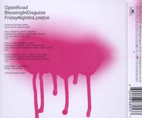 Bryan Adams Album: «Open Road» See larger image Bryan Adams Album: «Open Road» Close See other view Bryan Adams Album: «Open Road» Close Album information Title:Open Road Release date:2004-11-30 Type:Audio CD Label:Universal Import UPC:602498680537 Buy Track listing 1 Open Roadimg 3:29 2Blessing In Disguise 3Friday Night In London