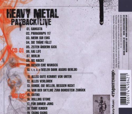 Bushido Album: «Heavy Metal Payback» See larger image Bushido Album: «Heavy Metal Payback» Close See other view Bushido Album: «Heavy Metal Payback» Close Album information Title:Heavy Metal Payback Release date:2008-10-28 Type:Audio CD Label: UPC:886974498421 Buy
