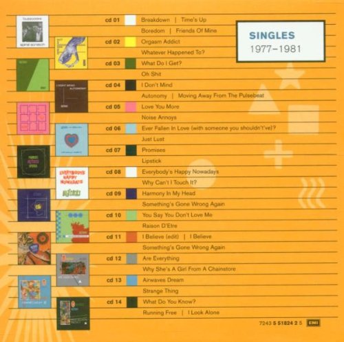 The Buzzcocks' singles output from 1977 to 1981 remains one of rock's all-time finest runs of two-sided singles. The 1979 vinyl compilation of the first eight singles, Singles Going Steady, was rightly regarded as one of the half-dozen best albums from the original British punk era. Inventory compiles the group's debut EP Spiral Scratch (the first ever indie British single), everything on SGS, and the seven singles released after it. Each is packaged in a miniature reproduction of the original picture sleeve, one of the most eye-catching and graphically influential strings of singles ever. If you don't own all of these songs, the best place to get most of them is the 2003 reissue of Singles Going Steady (the version with 24 tracks). You really can't live without songs like "What Do I Get?," "Ever Fallen in Love," "Something's Going Wrong Again," and "Orgasm Addict." Inventory, 14 CDs each limited to two-four songs, is clearly aimed at collectors; it includes the two singles from A Different Kind of Tension (including the rare edit of "I Believe") that don't appear on the new SGS. The perfect boutique item for that serious Buzzcockian in your tribe. -- Kent H. Benjamin