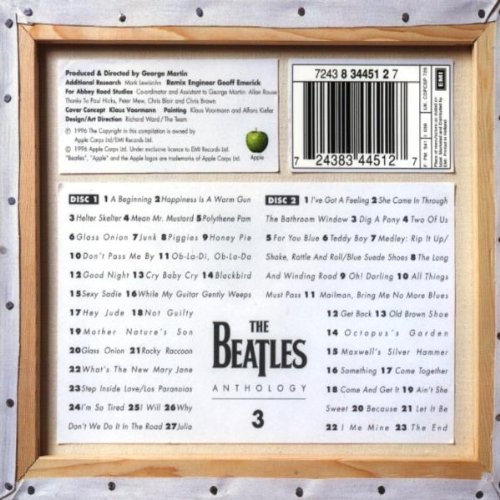 Far from "scraping the bottom of the barrel," as some would have it, this third and final installment of the ANTHOLOGY CDs is clearly the most essential. Anthology 3 fills in the more gaping holes in Beatle lore. Not only should it be required listening for Beatle fans, there is plenty that will appeal to casual listeners too -- in contrast to the first two Anthologies.