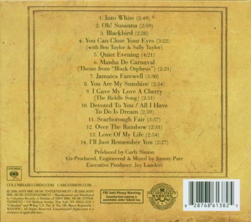 Carly also covers Judy Garland's "Somewhere Over The Rainbow" and the Beatles' "Blackbird" on the album, as well as recording two new tunes, "Love Of My Life" and " Quiet Evenin'".