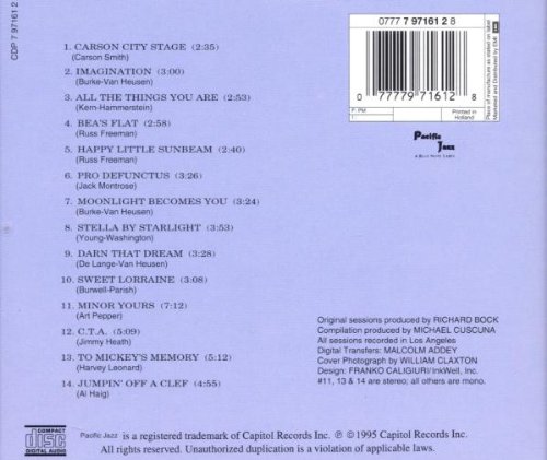 Whether as a trumpeter or singer, Chet Baker was always the subject of controversy among jazz listeners, a victim of fashion who was doomed in his lifetime to be either over- or underrated. These Pacific Jazz recordings from the mid-1950s present Baker the instrumentalist at the height of his popularity. While his coolly passive treatments of ballads like "Imagination" and "Stella by Starlight" may play to the languid stereotype of West Coast jazz, there's boppish fire and invention on the medium- and up-tempo tunes, with Baker emphasizing the middle register that was his forte. Altoist Art Pepper and valve trombonist Bob Brookmeyer turn up among the supporting cast, and there's a good choice of material by boppish heads from both coasts, including Carson Smith's "Carson City Stage," Jimmy Heath's "C.T.A.," and Al Haig's "Jumping Off a Clef." --Stuart Broomer