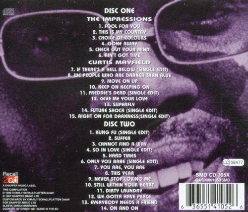 But if you only can only afford 1 Curtis Mayfield recording this is the most complete. His years with the Impressions,Donny Hathaway and solo. The patriotism of "This is My Country" juxtaposed against "If There's A Hell Below" which showed curtis