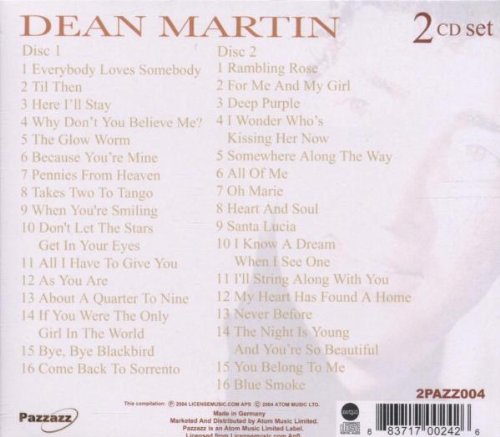 Hard as it is to find Dean's Reprise recordings on CD, this CD almost automatically qualifies for the highest rating. Adding to that that this disc features a mix of hit singles and album tracks makes it a required purchase for fans. I've docked it a notch for a few drawbacks : a better balance of selections from across all of the Reprise LPs (10 of the 24 tracks are from one LP, "Houston") would have made a more representative collection, and the track order could have been better (disc one features one marching beat after another, which becomes a bit wearing; disc two varies the pace for a much more enjoyable listening experience). There is also no booklet or any sort of liner notes, dates, etc. Still, this is well recommended and the agreeable price makes this a good value as well. For further collection building, the "All the Hits, 1964-1969" import CD collects the rest of Dino's Reprise chart hits (with 11 of its 20 tracks not included on "Everybody Loves Somebody") and "Hurtin' Country Songs" (which only overlaps with "ELS" on 3 of its 15 tracks) is also recommended.