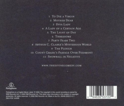First track, "To Die a Virgin" effectively sums up what The Divine Comedy are about before you start listening to the rest of the album. An elaborate tune, bucket loads of wit, and a charm in deliverance all in all make up what's so special about this band - and what always will be. "Mother Dear" is a realization of Nick Hannon of everything his mother meant for him, but never realized because of his own undoings. Such a sweet, joyful song you won't be able to take the smile off your face when listening to it. Then comes "Diva Lady", a seemingly happy song with its chirpy tune but lyrics which describe, well, essentially a diva: `She's a Diva Lady / She's a hopeless case / She needs extra makeup for her extra face / She's a hopeless case'. This is one of those songs you'll absolutely love on first listen. Next is the slower paced "Lady of a Certain Age", Neil Hannon gets all melodramatic about a posh lady in her sixties, whiling her time in the Mediterranean with not much meaning in her life, hoping a young man would buy her a drink. I'm sure Hannon will. "Light of Day" follows the same road of nostalgia and perhaps regret, which ends up being painfully successful in hitting a raw nerve - which I suppose shows how effective Hannon still is. "Threesome", a sunny one minute-ten second piano solo follows to introduce the cover, "Party Fears Two" - which I prefer to the original by The Associates because it seems so much more perfect for Hannon's sweet, soulful voice. "Arthur C Clarke's Mysterious World" keeps the tempo up for preparation to "Plough", which is yet another bleak, depressing song about a dull, difficult life of an office boy in a firm full of treacherous people (accountants, in this instance) - which everyone can relate to from time to time. "Count Grassi's Passage over Piedmont" follows, with its Bono-like commentary behind the singing to only bring the album to an end with "Snowball In Negative", which ends Victory on a bittersweet note.