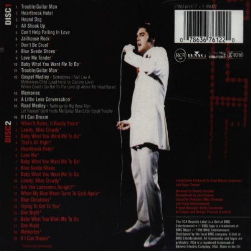 A must-have for Elvis fanatics, casual Elvis fans should also find this 35-track double CD to their liking. Most of the best-known classics are here, including "Heartbreak Hotel", "That's All Right Mama", "Jailhouse Rock", "Trying To Get To You", "Hound Dog" and "Lawdy Miss Clawdy", as well as several slightly lesser-known (but often very fine) songs, such as "One Night", "Guitar Man" (in a medley with "Trouble"), and "When It Rains It Really Pours".
