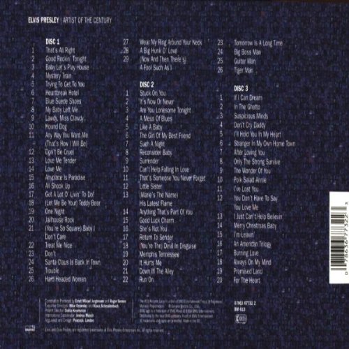 Yes,he really was the Artist of the Century. It's not just his sales figures, but his impact on music and society that make Elvis Presley the icon of the 20th Century. Here are 75 reasons why h was the King of Rock and Roll. At first glance, this CD seems to be aimed at the Elvis neophyte. But a closer look reveals that while most of the hits are here, there's a nice sprinkling of album cuts that will thrill the die-hard fan, as well. Disc 2, which covers the post-Army/pre-68 Comeback is the most surprising of the 3 discs. Disc 3 which covers the 68 comeback/70's is fine, but the 70's cuts are disappointedly selected. While all the big hits are here, I was saddened to see that "Viva Las Vegas", "Kentucky Rain", "Hurt" and "Too Much" are absent. There was room on the package for these tracks, and RCA should've extended this to 80 tracks. Still, this is highly recommended for beginners and Elvis fans alike. Good sound, liner notes and the thrill of remembering the King of Rock and Roll again.