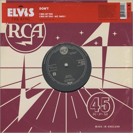 This is a re-release of Elvis' 1958 double-sided hit single. "Don't" was an international hit that went all the way to number 1 in the US. It's original flip-side, the uptempo "I Beg of You" was also a big hit peaking at number 8 on the US singles chart. This CD includes an alternate take of "I Beg of You." A nice collector's item for avid Elvis fans.