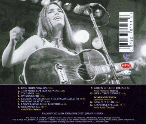 This is another great album in Emmylou Harris' catalog. No Gram Parsons' covers on this one. However, she does an emotional reading of Dolly Parton's "To Daddy" which is just devestating. She does two Rodney Crowell songs including "I Ain't Living Long Like This" and "Leaving Louisiana In Broad Daylight". She does a beautiful cover of "Defying Gravity" which is an album highlight. Other favorites include "Easy From Now On", "Two More Bottles Of Wine", "My Songbird". Two bonus cuts include "New Cut Road" and "LaCassine Special".