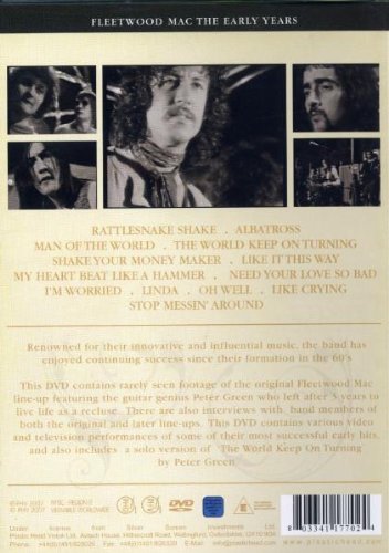 The Early Years is what it says: a collection of rare footage clips and promo videos of the original Fleetwood Mac. And it is good. The songs presented are in their entirety, even though with some voice-over narrative, which is brief and to the point. For Peter Green fans it is a gem, since very precious little is available in terms of video when he was with the band (only 3 years). What surprised me is the actual quality of the sound, even though such productions have moved light years since the early Fleetwood Mac times. A couple of presentations (the first and last) are from a party at the Playboy Mansion. Those are in color. So is the video promo of "Albatross". The rest is in black and white, which is really okay, since it gives the DVD a feel of a documentary. As with their performances, most of the vocal duties are shared by Peter and Jeremy Spencer. Standouts: Rattlesnake Shake, Man of the World, The World Keep on Turning, Shake Your Money Maker, Need Your Love So Bad. The only reason I give it 3 stars and not more is because technically it is rather basic. It would have been done so much better these days. But, "Oh, Well...", as Peter would have said.
