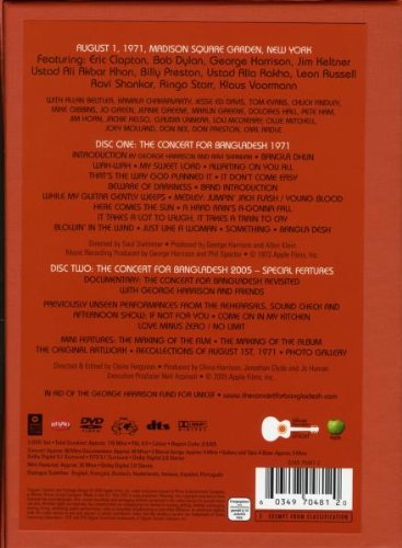 it's about time the concert for bagladesh came out on dvd. even better is the deluxe edition, which i bought. besides the outstanding quality of the concert dvd, the additional disc, with interviews and bonus tracks is just great. (although it's a pity, isn't it a shame that bob dylan didn't do an interview). then there's the packaging, which is beautiful. the dvds in its own case, and the great booklet. the poster is great for framining and hanging on your wall. postcards are cool, and the apple sticker is ok. this is how older material should be presented, as opposed to the latest lennon "collection". skip the regular dvd edition and get the deluxe.