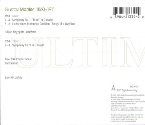 - Título:Mahler: Symphonies Nos. 1 & 9 / Lieder eines fahrenden Gesellen (Wayfarer Songs)