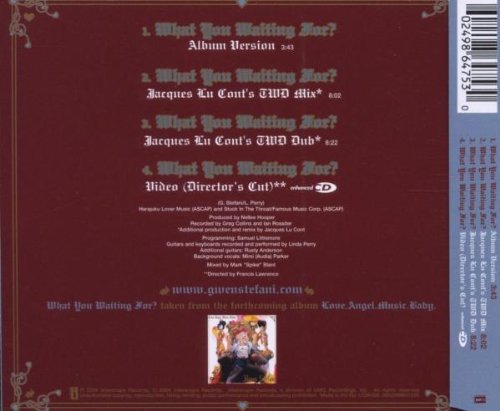 I was never a fan of No Doubt, but I am loving her solo stuff. What You Waiting for is without a doubt the best song on the album making the others seem a bit less, but overall I enjoy the album and plan on buying this single soon.