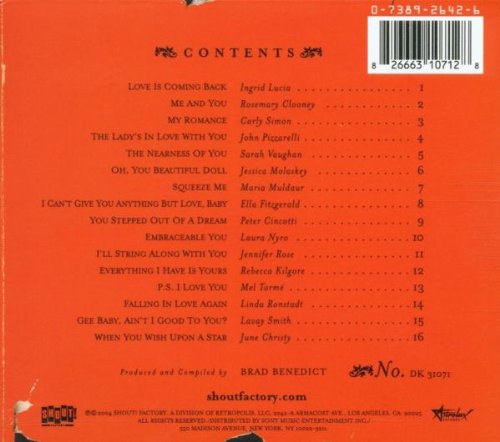 This CD contains Standards performed by very well known artists like Rosemary Clooney, Sarah Vaughan, Ella Fitzgerald, Mel Tormé, and other highly recognized performers. Each song is exquisitely arranged and recorded, and I really appreciate the attention to detail paid to recreating the sounds of decades past.