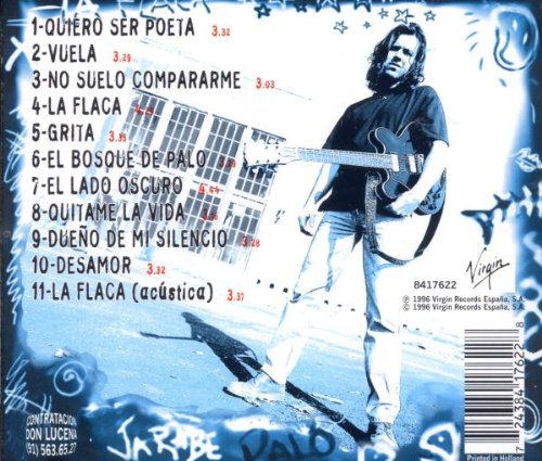 When I first heard the song " La Flaca" back in 1997 in Spain, I was struck by its catchy sounding lyrics and its rhythm and beat. I knew right away this song was a winner. The only thing I wasn't sure of was who is singing it, I initially thought Juan Perro from Radio Futura, but after asking around that was ruled out. It wasn't until I went to a record store in Bilbao that I found out it was Jarabe de Palo. Who is he? I never heard of him before, that's right he's a new artist from Barcelona, but the singer is named something else (Pau Dones). At that time I realized Spain had a new star in the making someone who could easily upstage Joaquin Sabina, El Ultimo de la Fila (Manolo Garcia y Quimi Portet), Radio Futura (Juan Perro), etc. And that is what has happened, people throughout Spain have been obsessed with "La Flaca" never seeming to get enough of it, it was being played everywhere. This album has other great songs such as El Bosque de Palo, El Lado Oscuro, Dueno de mi Silencio and so on. So don't hesitate and treat yourself to the best thing that hit Spain musically in 1997 and buy this great album.