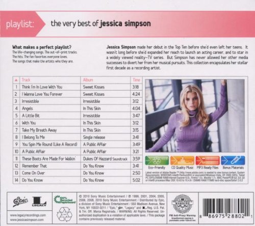 Update: You can order the import version titled: The Collection Jessica Simpson for the same price or less $$. This came out 1 month after Playlist's version, both are by Sony. The Collection has 2 more tracks on it, "Sweetest Sin" which is her 1st single off of In This Skin (single/video version) and "When You Told Me You Loved Me" off of Irresistible, which was never a single but is still a great song.