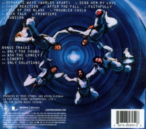 This is also why the bonus tracks hit home so well. "Only The Young" was a single from the movie "Vision Quest," "Only Solutions" from the original "Tron" and "Ask The Lonely" from the John Travolta/Olivia Newton John pairing, "Two of a Kind." Each of these sounded like an insta-hit and pulled down substantial airplay at the time. Added to "Frontiers" as extras. they highlight the band's strengths and again emphasize the point of how Journey had pushed themselves into a position of that of a well-honed producer of hits.