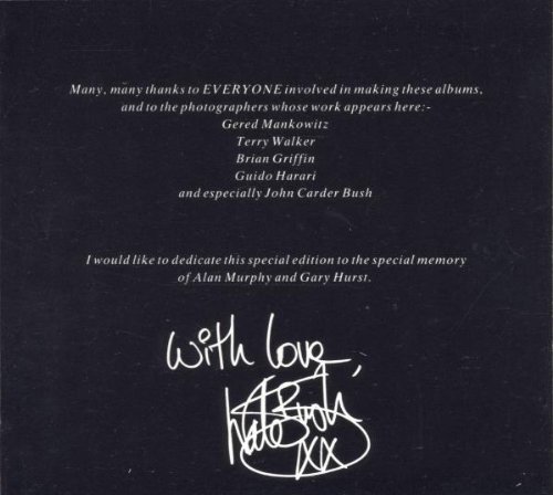 The collection is a little bit hefty for the price, because it is an import collection, and it would be great if they revamped this one after she finishes her next CD (supposedly in 2005) as well as put out a 2CD set of her classics, so it could include a "Vol 3" consisting of "Red Shoes" b-sides and early demos long bootlegged as well as "Brother and Sister" with Midge Ure, the songs she did with Roy Harper, and "Don't Give Up" with Peter Gabriel. There really isn't much more they could put out as far as rarities go... but a revamped box set should also include a DVD of all her groundbreaking videos and TV appearances, her "Live at the Hammersmith Odeon" concert, and "The Line, The Cross and the Curve" film, all of the studio CDs re-released in Surround sound. Now THAT would justify repackaging what is already a great collection.