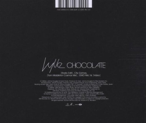 I have not really been a Kylie fan until she came on the scene with "Fever". I purchased that album not knowing what it was going to sound like, on the recommendations of a Virgin Records employee's recommendation. Boy, did I LOVE it! So, when Kylie brought out "Body Language", I was absolutely smitten, and purchased the import version before the U.S. version arrived. Althought "BL" is a totally different flavor then "Fever", I absolutely LOVE it! I never thought "Chocolate" would make the status quo as a single; however, after the announcement on her U.S. website stated it was going to be released as a single, I took the time to listen to it, and it grew on me. The video is absolutely stunning! I rated the single as a "4" only because I felt the remixes could have been a notch up. They are a little too slow for my tastes, but make this already great single more grand..."City Games" is also a catchy tune with a great, funky beat, although the title is quite silly, but, hey, Kylie is a great singer and performer, so I will let a little silliness slip by. Don't believe you will be disappointed with this single. If it does well, which I am hoping it will, perhaps she will release "Obsession" as her fourth and final single from "BL". Another catchy tune! Go, Kylie!