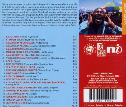 South Africa is justly famous for its vocals, especially its group singing: ROUGH GUIDE TO SOUTH AFRICAN GOSPEL shows why and how.