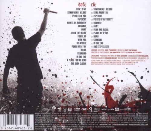 Never ones to be too stingy with new releases, Linkin Park decided to end '03 with a live DVD/CD combo release that will please any LP fan. The DVD is basically an extension of the much shorter CD. All of their hits are performed live, straight from Dallas, TX (on the Summer Sanitarium Tour, which featured Metallica, Limp Bizkit, Deftones & Mudvayne). All of Linkin Park's live energy and enthusiasm translates well into this package. Aside from the songs you would expect to appear on here like 'In The End,' 'One Step Closer' or 'Somewhere I Belong,' there are plenty of little surprises and rarities in here. How many bands are daring enough to perform a remix? Linkin Park manages to pull it off with 'P5hng Me A*wy' which, although missing Stephen from Taproot, sounds better live than it did on "Reanimation." On 'One Step Closer' we are also treated to a sampling of Jonathan Davis' part (of course, missing the famous frontman again) during the bridge. "Meteora" stand-outs such as 'Figure 0.9' and 'Don't Stay' are powerful and potent additions to Linkin Park's live show and fit in with the tried and true tracks like 'Points of Authority' and 'Papercut.' All in all, with the DVD and CD together, this is one item any Linkin Park fan can't be without. For a band who is criticized often as being a boy-band with guitars, this live-disc proves everyone wrong. Linkin Park don't just come alive on the record, they come alive in their live show as well.