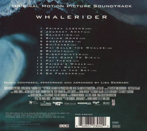 Gerrard has composed music like a painter. She has taken a certain mood and emotion and used it to create a landscape. The music is mostly ambience, it is mostly background, but it is very rich. It has so many layers. There are so many layers of emotions and feelings happening at the same time that you find yourself weeping just because of the scale of the palette. Strings lead the way and all sorts of sound effects and human voices, including maori chanting and Gerrards own, creates textures. In some occations we can also hear the traditional instruments used by Maoris, which creates a sense of place and history. The traditional culture of the Maori people is very important in Gerrard's music in Whale Rider. It is like a tin whistle for Irland. It tells its own story and gives us some kind of perspective of the history. "Waka In The Sky" and "Go Forward" are simply beautiful examples of this.