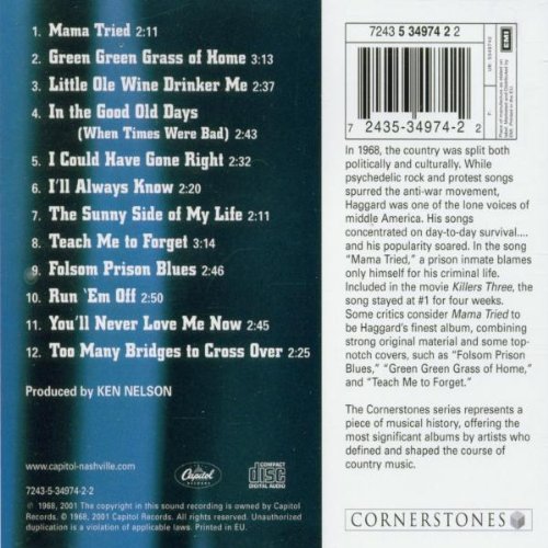 "Mama Tried" includes the title track that is probably the best country song there is. Everything from the beginning riff to the lyrics to the ending. I have heard the song many times the last 40 years, but still get chills when I hear it. Get this album immediately.