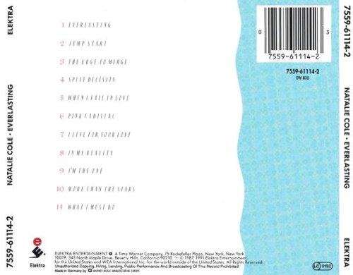 I still say that Everlasting is Natalie Cole's best album. It shows her at her highest form long before the Unforgettable mega success and multiple Grammys. I still like the aggressive Jump Start. For starters, it could summarize what she had gone through in her hiatus, what with the substance problems she had before, just a jump start on her life back in 1987. Other songs I like are The Urge to Merge, In My Reality, Split Decision and I'm the One, I Live For Your Love as well as her reading of When I Fall in Love. I still love her version of Pink Cadillac, though they made a remix of it in 1988 that should have been on the album. But this is a very superb album with an emphasis on a live band on most of the songs. I have played this album the most out of Natalie's albums. Her finest and best collection to date!