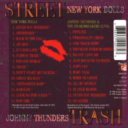 Like most(if not all)Recall 2-CD releases,'Street Trash' gives the customer their money's worth,look at the good used price on this at $10.99.Disc one is 14 tracks from the Dolls,like "Jetboy","It's Too Late","Trash","Vietnamese Baby","Babylon" and the romping "Looking For A Kiss".Disc two has 13 cuts of Dolls bassist Johnny Thunders material,like "Personality Crisis","One Track Mind","Born To Loose" and many other good ones.Maybe one aimed toward the completist,but I honestly think a new fan could get something from this title as well.Top of the line vintage all American punk.Recommended.