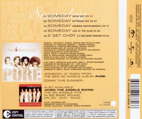 No Angels Album: «Someday» See larger image No Angels Album: «Someday» Close See other view No Angels Album: «Someday» Close Album information Title:Someday Release date: Type:Audio CD Label:xxx UPC:602498078266 Buy Review - Product Description Tracks: [Radio Edit] 3:14 / [Ext. Mix] 4:27 / [Instr.] 3:13 / [Live At The Club] 3:56 / 2 Get Over U [Big Band Vers.] 3:22