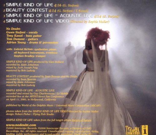 The sad "Simple Kind of Life" never sounded so sweet as it does on the acoustic version on this single. Gwen Stefani's breathy singing gives you chills instantly. The slightly dark "Beauty Contest" comes through much like a hybrid of what sounds like "Marry Me" and some missing lyrics from a possibly early edition of "Magic's in the Makeup", with some beautiful and eerie vocalizing. Be sure to listen to the last couple of seconds for a cute little surprise. Trust me it'll bring a smile to your face. All in all, a perfect buy for any No Doubt fan, or even a fan of enhanced cd's (the digital clarity is perfect in the cd-rom music video). Buy this NOW, and you'll have no doubts about it.