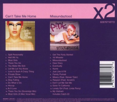 This 2 cd set contains the Germany releases on Pink's first 2 albums 1. "Can't take me home" and 2. "Missundaztood". It is a great buy because it is inexpensive and you get 3 bonus tracks you won't get on the US versions 1. "There you go" Remix 2. "Most girls" Remix 3. "Catch 22". "Can't take me home" is slightly disappointing because the word "S#!+" is used on the song "There you go". It is censored out of the song and the remix on the cd. Otherwise, It is a great buy