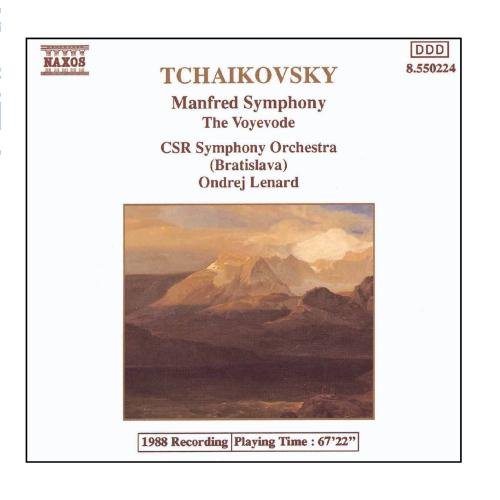 What a marvellous disc this is! If I give it four stars instead of five, that is because of Naxos’s recording equipment, which, back in 1988, meant that orchestral music had to be recorded at a distance, or at least at a relatively low volume-level – studio recordings by the “majors” sound a lot “fuller”. But having said that, producer Günter Appenheimer has really made the best possible job of this recording, and provided you have high-quality hifi equipment and are able to listen at a higher volume than usual, you will find that every detail, both of Tchaikovsky’s superb music and of the CSR Symphony Orchestra’s wonderful performance is captured in an excellent stereo panorama: listen out for the percussion, the harp, the celesta and the majestic organ at the end of the “Allegro con fuoco” of “Manfred”! Full marks to conductor Ondrej Lénard, too, for a really riveting performance that demonstrates in a masterly way how brilliant Tchaikovsky was as an orchestrator, here comnbining the “inheritance” of Berlioz with some very Russian-sounding tunes and creating music which can be compared with Tchaikovsky’s last two symphonies. Fortunately, Naxos also provide a short written run-down of the programme that Tchaikovsky was following, although I also found it helpful to read the article on “Manfred” in a music lexicon for a little more detail and background. The symphonic ballad “The Voyevode” (Op. 78) is also very much worth hearing.