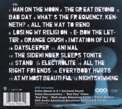 And what is on the album is terrific. The selection and sequencing is inspired, and as a result it sounds like a great album--far more so than the typical "best of" or "greatest hits" releases. The juxtaposition of "Kenneth" with "All The Way to Reno" is simply stunningly brilliant, and the closing trilogy (Everybody Hurts, At My Most Beautiful, Nightswimming) is perfect.