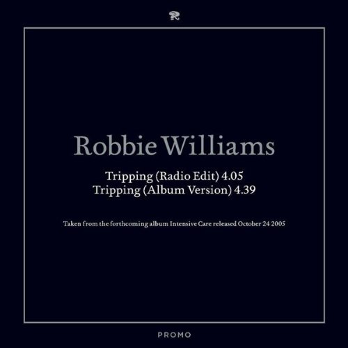 "Tripping" is the initial single from Robbie William's latest CD, "Intensive Care" (available in the U.S. only as an import). I have to admit that I really disliked this song when I heard it the first time. Robbie sings part of the song in a somewhat grating falsetto that overwhelms the song. However, repeated listens reveal a rather good song that is much more varied than it sounds at first. The instrumentation is lush and also very danceable - somewhat reminiscent of 70s disco but rather modern sounding as well. I'm not sure exactly what Robbie is singing about, but the lyrics seem to depict being downtrodden - I've taken as much as I'm willing to take/ Why do you say we should suffer in silence?