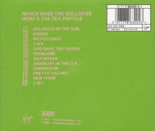 Not much needs to be said about NEVER MIND THE BOLLOCKS, but the second disc is a necessary purchase even if you bought the SEX PISTOLS BOX, which is full of demos (but not all of them). There was not enough time to fit everything on that, so some tracks were cut from it. This 2CD set was issued first. The following track list was found after researching on the web. This info is not on the set (actually almost no info is on the set).