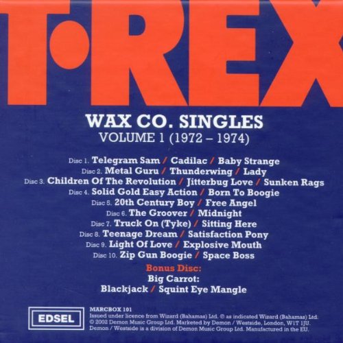 Get it on with this deluxe box set housing 10 CD replicas of Bolan's '72-'74 singles in picture sleeves, plus a bonus single by rare side project Big Carrot! Includes such glam anthems as Telegram Sam, 20th Century Boy , and their brilliant B-sides.