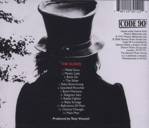 I enjoy the music on this CD. It is a lot of fun. The lyrics sound cool without making sense. From TELEGRAM SAM, "Automatic shoes / Automatic shoes / Give me three D vision / And the California Blues." Marc Bolan displays a broader variety of styles than on the previous album. The glam rock anthems METAL GURU, THE SLIDER, BUICK MACKANE, and especially TELEGRAM SAM mine that same vein of the shuffle beat which Bolan achieved legendary status with on BANG A GONG. I like these because of their silliness. I always smile when I hear the opening scream of METAL GURU, and the absurd lyrics just complete the looniness: "Metal Guru has it been / Just like a silver-studded sabre-tooth dream / I'll be clean you know / Pollution machine / Metal Guru is it you." I feel a sultry sensation from the slower numbers: MYSTIC LADY, THE SLIDER and most of all, from BALLROOMS OF MARS. In the early seventies, Paul McCartney acknowledged that he would not desire the popularity of Marc Bolan. Indeed, T. REX was the nazz. More impressive is the influence felt from his songs decades after they were penned, particularly from the post punk era. BLONDIE used BANG A GONG as an encore, and the legendary goth-rock band BAUHAUS released a single covering TELEGRAM SAM, as two prominent examples. The professionals involved with this effort are no slouches, either. Ringo Starr did the cover photographs and needs no introduction. Tony Visconti had already completed a series of albums for some of the biggest names in British Rock including, David Bowie, Strawbs, Badfinger, Gentle Giant, and would go on to the Wings' project, BAND ON THE RUN. What an exciting and fun piece of rock 'n roll history. If you are interested in glam rock of the early seventies or in music that is a looney romp, this CD will interest you.