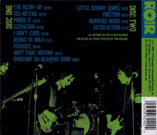My original interest in this album stems form the fact that I saw the final show at The Bottom Line of Televisions' farewell 1978 tour. Suffice it to say it was the greatest live show I have ever seen. Therefore I have always searched with limited success for a great document of this tour. The original version was a 1979 bootleg on Arrow records which contains half of the current CD. The next three versons an ROIR tape and two CD's have all been the same and sound the same. In fact all three mislabel the opening cut "The BLow-Up" when in fact it is a cover of The Thirteenth Floor Elevators' "Fire Engine".